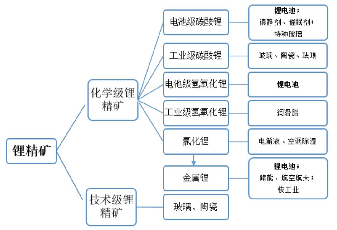 化學(xué)級鋰精礦:主要自用于生產(chǎn)四大類鋰化工產(chǎn)品,即碳酸鋰、氫氧化鋰、氯化鋰及金屬鋰,目前主要由四川射洪、江蘇張家港、重慶銅梁的生產(chǎn)基地進行鋰化合物生產(chǎn)。公司的鋰化工產(chǎn)品廣泛應(yīng)用于鋰電池、玻璃陶瓷、潤滑脂、醫(yī)藥、核工業(yè)、航空航天等領(lǐng)域。