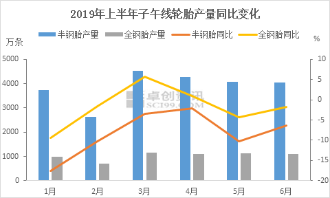 炭黑的主要下游輪胎在2019年上半年的產(chǎn)量同比下滑,其中全鋼胎1-6月份的產(chǎn)量同比下滑1.8%,半鋼胎1-6月份的產(chǎn)量同比下滑8.2%。而輪胎的下滑則與出口受阻及國內(nèi)終端需求下滑影響,其中汽車產(chǎn)量同比下滑14.2%,轎車產(chǎn)量同比下滑16.1%。輪胎占據(jù)炭黑總需求市場的70%左右,截止發(fā)稿,國內(nèi)輪胎企業(yè)庫存高位,需求低迷,隨著輪胎市場需求淡季到來加之政策面沖擊影響,輪胎企高位庫存消化仍需周期,炭黑后市需求面或?qū)㈦y有放量。
