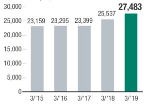 2018年,公司凈銷售額為27483百萬日元(截止到2019年3月)
