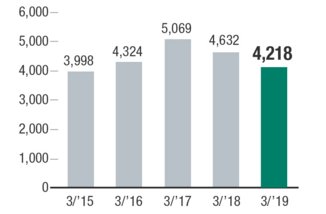2018年,公司營業(yè)利潤為4218百萬日元(截止到2019年3月)