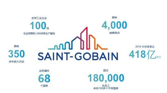 主要數據:圣戈班在全球業(yè)務遍布68個國家,2018年,全球員工超過180000人,營業(yè)額近418億歐元。