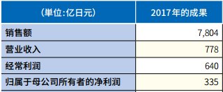 公司業(yè)績:2017年,公司銷售額為7804億日元,營業(yè)收入為778億日元。