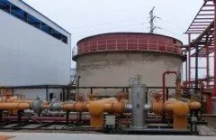 將壓縮、變換、脫碳各處油水分離器內(nèi)經(jīng)分離后,利用地溝將含油污收集至集油水池(設(shè)地面、代防雨帽)。將油污水用泵打入隔油水箱,將含油水中的漂浮油及懸浮物進(jìn)行預(yù)處理,隔油水箱出水經(jīng)泵送入一元凈油器內(nèi)。先進(jìn)入粗;磻(yīng)室,使呈分散的微小油滴經(jīng)反應(yīng)后形成大油滴,再進(jìn)入分離室,浮油和大油滴利用上浮力從水中浮出,進(jìn)入貯油層,達(dá)到一定厚度(>1000mm)定期從油層中排出部分浮油入油桶,進(jìn)一步處理回收或外售。下降油污水再和專用除油凈(藥劑)反應(yīng),將O/W形乳化油進(jìn)行破乳分離。浮油經(jīng)斜板分離而上浮除去,溶介油則吸附在藥劑形成的絮狀體吸附物質(zhì)上,在重力作用下,下沉于器底,定期排出。一元凈油器出水后經(jīng)過(guò)濾器過(guò)濾部分懸浮物,處理后合格水,排入循環(huán)水代替補(bǔ)充水用。
