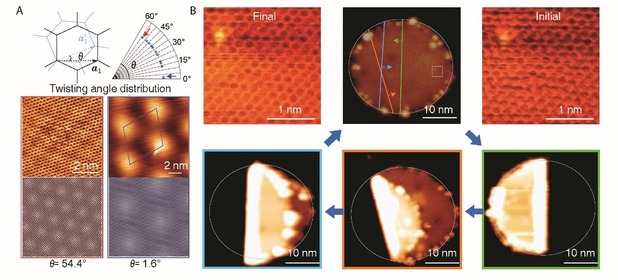 圖2 折疊方向精確控制以及角度連續(xù)可調(diào)的旋轉堆垛雙層石墨烯的構筑。