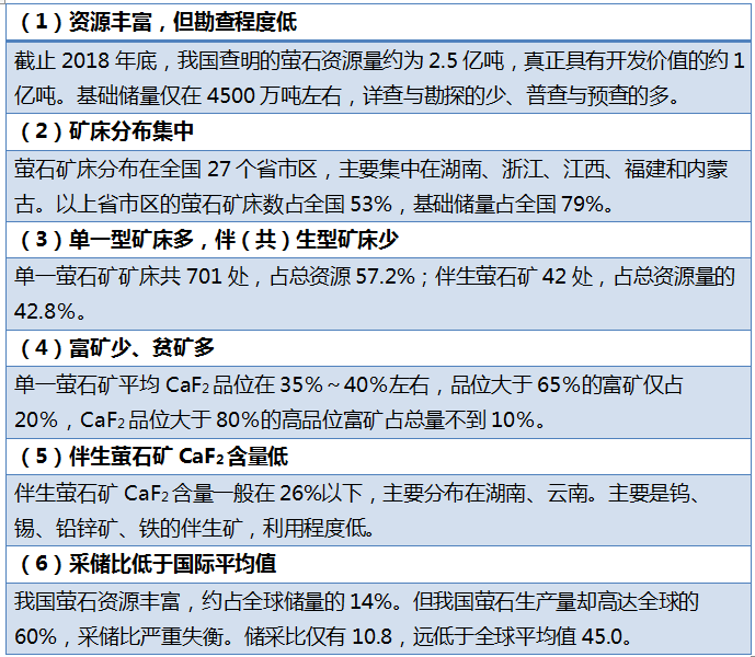 此外,我國螢石礦產(chǎn)具有一定特點(diǎn),如采儲(chǔ)比嚴(yán)重失衡,富礦少,貧礦多,有效儲(chǔ)量不足等。