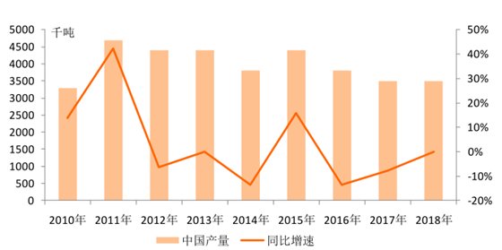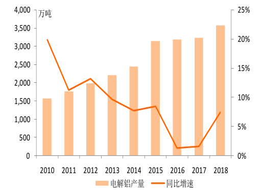 2010- -2018 年我國電解鋁產(chǎn)量及增速
