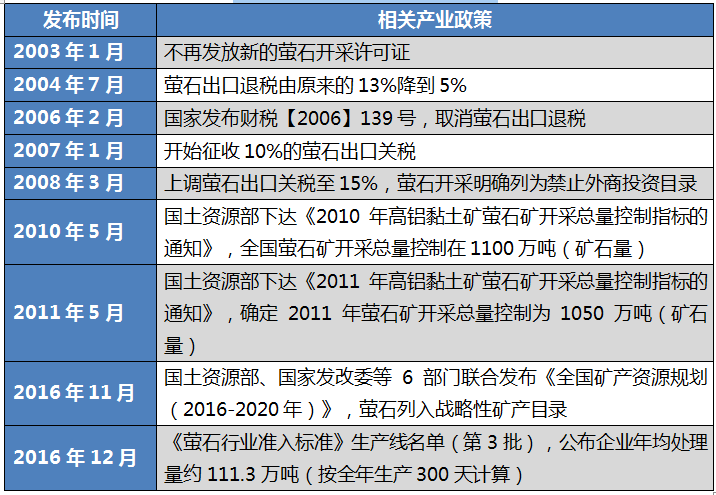 我國螢石礦相關(guān)產(chǎn)業(yè)政策一覽