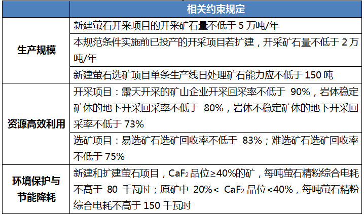 《螢石行業(yè)規(guī)范條件(征求意見稿)》提出的行業(yè)相關(guān)約束規(guī)定