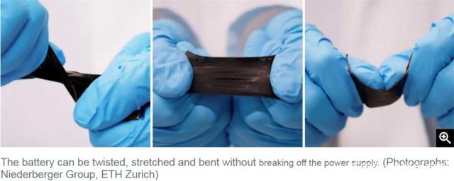 中國粉體網(wǎng)訊 近日,著名材料科學(xué)期刊《先進(jìn)材料》(Advanced Materials)刊登了一項(xiàng)具有里程碑意義的研究成果。經(jīng)過多年來持續(xù)不斷的研究,來自瑞士蘇黎世聯(lián)邦理工學(xué)院(ETH Zurich)的研究團(tuán)隊(duì),終于把鋰離子電池內(nèi)部所有的組成結(jié)構(gòu)都換成了可以彎折、扭曲的新材料,制造出了世界上第一塊可以“任意”彎曲、拉伸的鋰離子電池。
