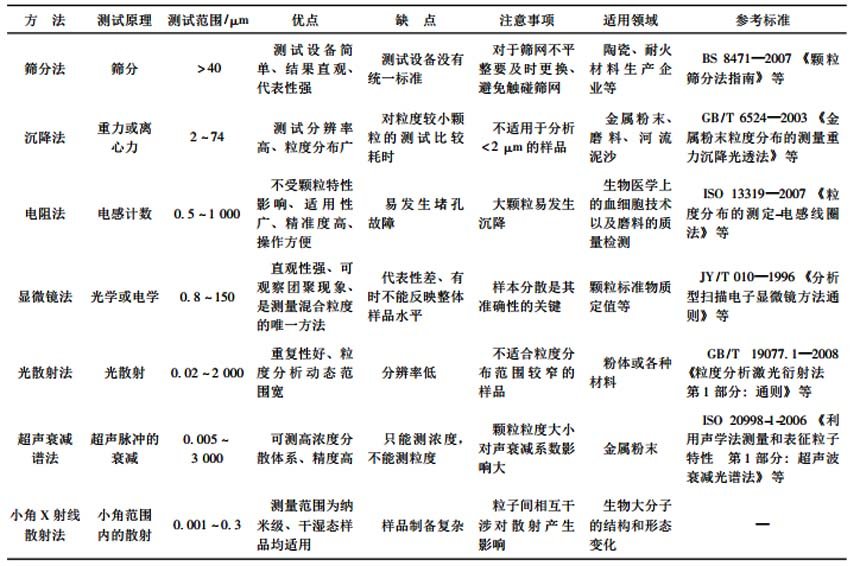 篩分法測試結(jié)果直觀,便于理解,是所有方法中最簡單的一種。但目前基于篩分法的儀器沒有統(tǒng)一標(biāo)準(zhǔn),克服篩孔尺寸或校準(zhǔn)尺寸隨時間的變化較為困難,另外,其分辨率較低,對粒度小于30μm以下的超細(xì)顆粒并不適用,這是限制篩分法發(fā)展的關(guān)鍵因素。