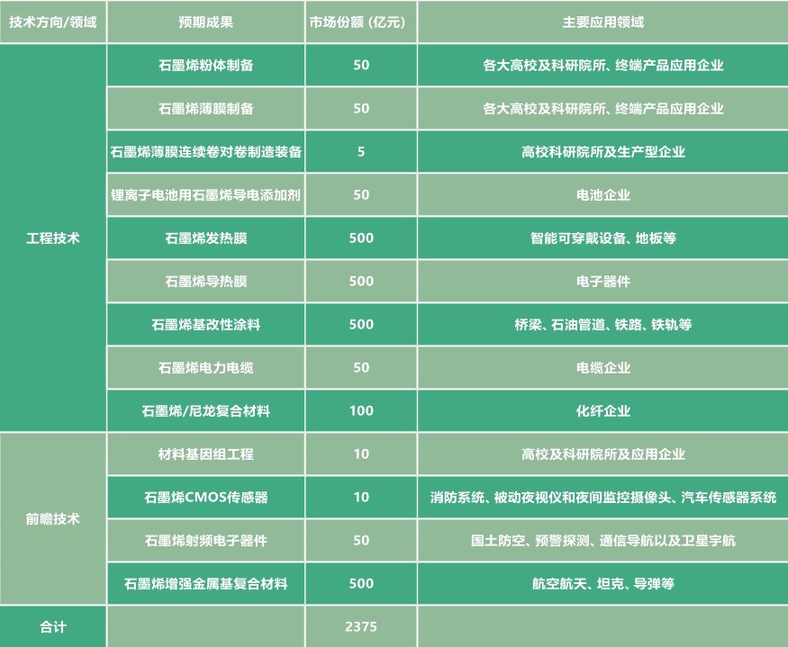 石墨烯應(yīng)用市場(chǎng)預(yù)期(到2025年)