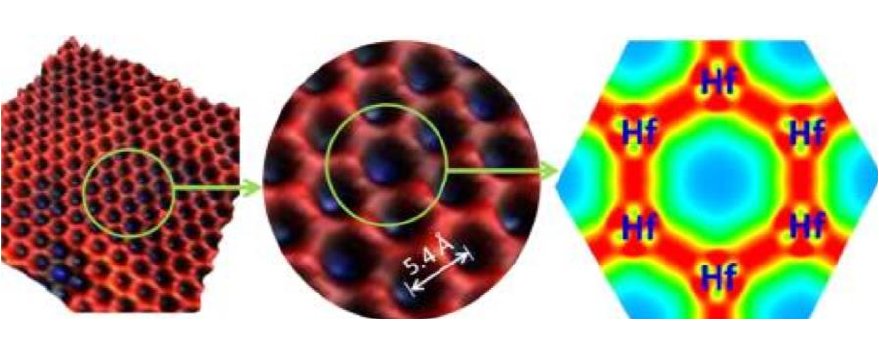 2013年,李林飛等人發(fā)現(xiàn)了制備鉿烯二維原子晶體的方法。他們選用Ir(111)基底,利用電子束蒸發(fā)源將金屬鉿沉積到表面,通過(guò)后續(xù)退火理得到了規(guī)則有序結(jié)構(gòu)。結(jié)合STM和LEED表征以及DFT計(jì)算,他們確認(rèn)了單層平面二維蜂窩狀的鉿烯結(jié)構(gòu)。