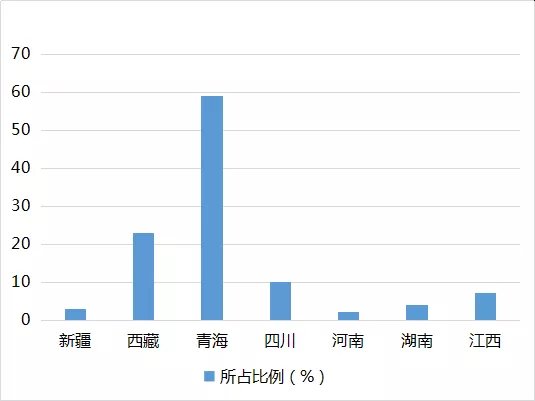 1.鋰礦床分布十分集中,鹽湖鹵水型鋰礦床主要分布在青藏高原和湖北;四川、江西、湖南、新疆四省的礦石鋰資源占到全國礦石鋰資源的98.8%;