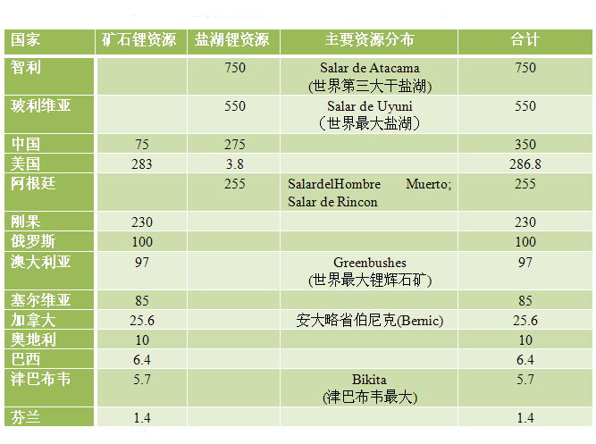 各國鋰資全球主要鋰礦床分布圖