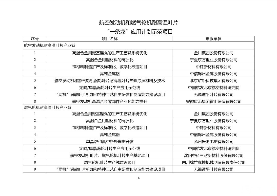 航空發(fā)動機和燃氣輪機耐高溫葉片“一條龍”應用計劃