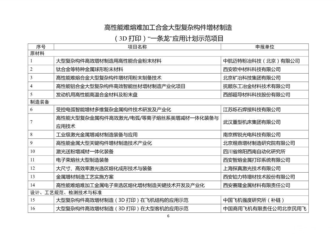 根據(jù)公示,為聚焦解決工業(yè)基礎(chǔ)產(chǎn)品和工藝應用難題,工信部繼續(xù)組織開展工業(yè)基礎(chǔ)領(lǐng)域重點產(chǎn)品、工藝“一條龍”示范應用推廣工作。經(jīng)企事業(yè)單位自愿申報,各地工業(yè)和信息化主管部門、中央企業(yè)推薦,第三方推進機構(gòu)組織專家評審,本次公示的“一條龍”應用計劃分為六類,分別為:傳感器、控制系統(tǒng)、超低損耗通信光纖預制棒及光纖、航空發(fā)動機和燃氣輪機耐高溫葉片、高性能難熔難加工合金大型復雜構(gòu)件增材制造(3D打。、石墨烯。