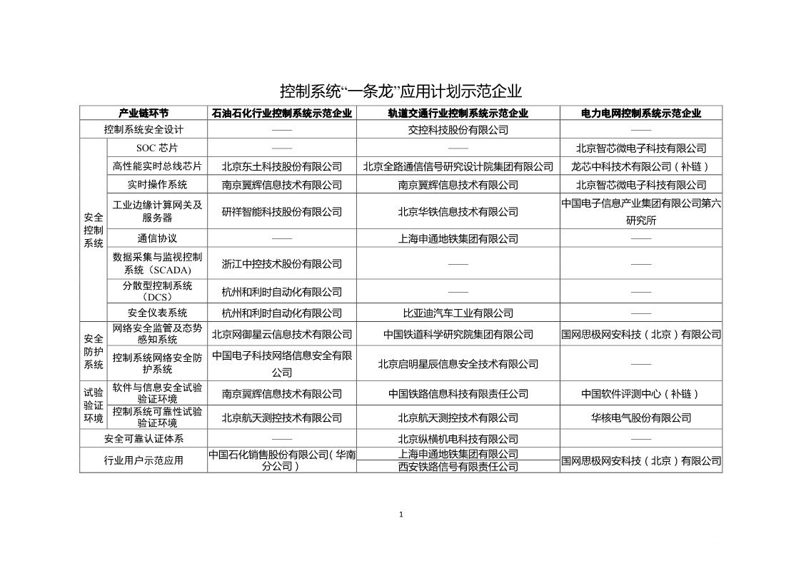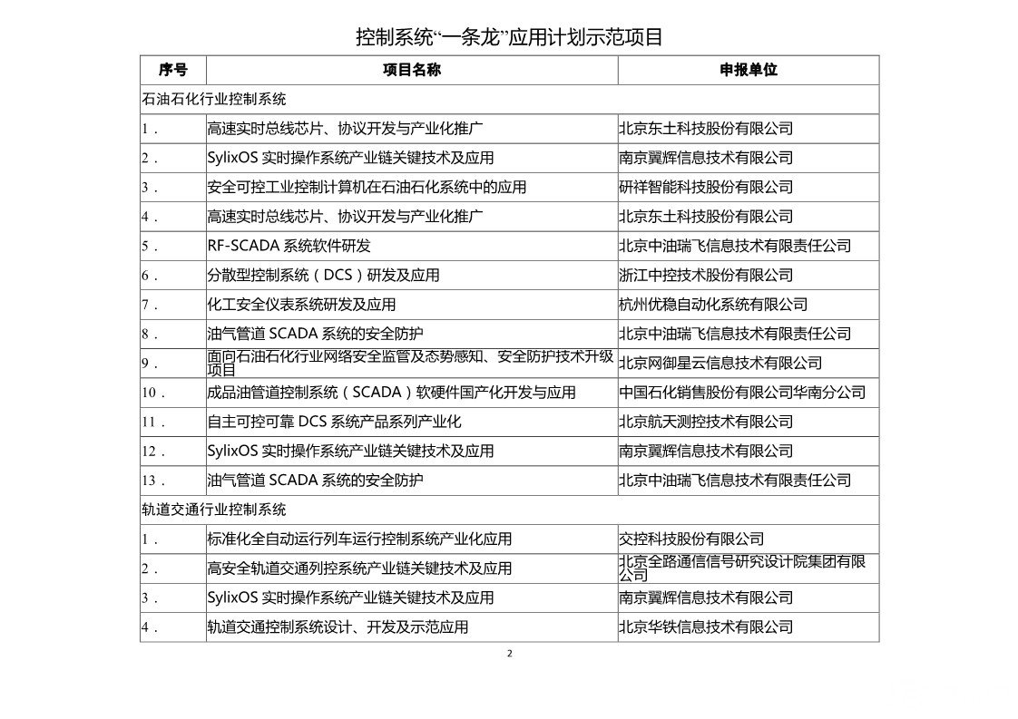 控制系統(tǒng)“一條龍”應用計劃