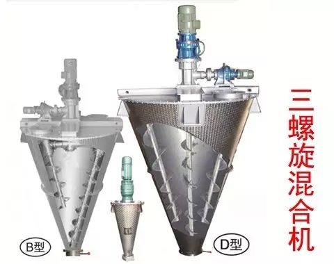 錐形三螺旋混合機(jī)(4m3以上):在原雙螺旋錐形混合機(jī)基礎(chǔ)上系統(tǒng)進(jìn)行創(chuàng)新改進(jìn),增加一條螺旋,混合故障率極低、采用兩條對稱排列螺旋及中間一條長螺旋順轉(zhuǎn),原長螺旋斜度大、壓力大、今縮短螺旋長度牢固,增加螺旋的強(qiáng)度,使得三條螺旋比現(xiàn)有的雙螺旋運(yùn)行更加的穩(wěn)定,螺旋越多,混合效果越明顯,混合精度更高,提高生產(chǎn)率,保證質(zhì)量,使設(shè)備壽命增長。采用該系列機(jī)提升混合效果,解決了用戶對特輕、特細(xì)物料難以混合均勻的困難,同時(shí)對一般物料速度、精度均有明顯提高,減少混合時(shí)間,具有節(jié)能意義,特別適用于大容積4m3以上機(jī)型的物料混合。
