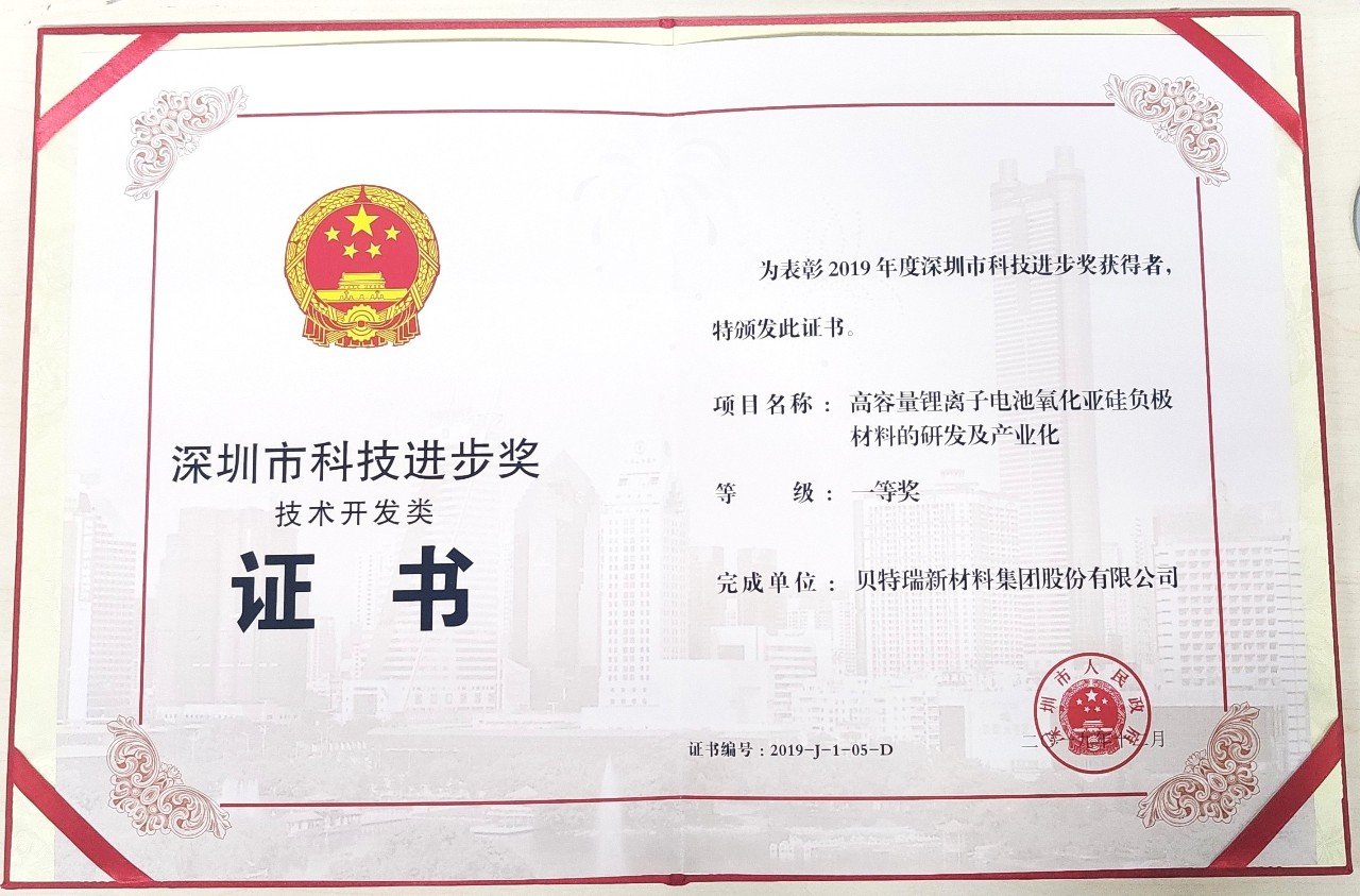 深圳市科學(xué)技術(shù)獎是深圳市科技創(chuàng)新的最高榮譽,該獎項是貝特瑞集團繼2018年度獲得中國專利優(yōu)秀獎之后的又一次重量級獎項,進一步體現(xiàn)了貝特瑞的科技創(chuàng)新精神,同時也是貝特瑞自主研發(fā)實力提升的一次重大成果展示。