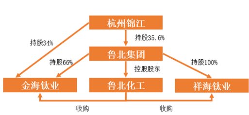 此次交易為關(guān)聯(lián)交易。天眼查顯示,金海鈦業(yè)股東為山東魯北企業(yè)集團總公司(下稱“魯北集團”)和杭州錦江集團有限公司(下稱“杭州錦江”),而前者是魯北化工及祥海鈦業(yè)的控股股東,后者持有金海鈦業(yè)34%的股份及魯北集團35.6%的股份。