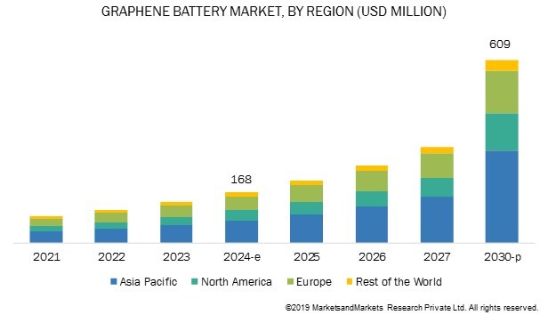 中國(guó)粉體網(wǎng)訊 根據(jù)國(guó)際市場(chǎng)研究機(jī)構(gòu)Markets and Markets最新發(fā)布的報(bào)告,到2030年全球石墨烯電池市場(chǎng)規(guī)模有望達(dá)到6.09億美元,期間年復(fù)合增長(zhǎng)率達(dá)到23.9%。