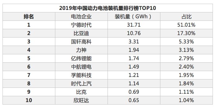 2019年欣旺達(dá)首次躋身動(dòng)力電池裝機(jī)量前十位