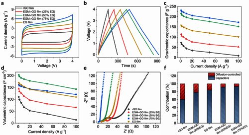 圖3. 片層間距可調(diào)節(jié)的復(fù)合石墨烯薄膜的電化學(xué)表征