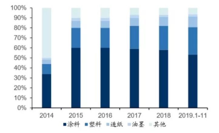 近五年國內(nèi)鈦白粉需求結(jié)構(gòu)變化