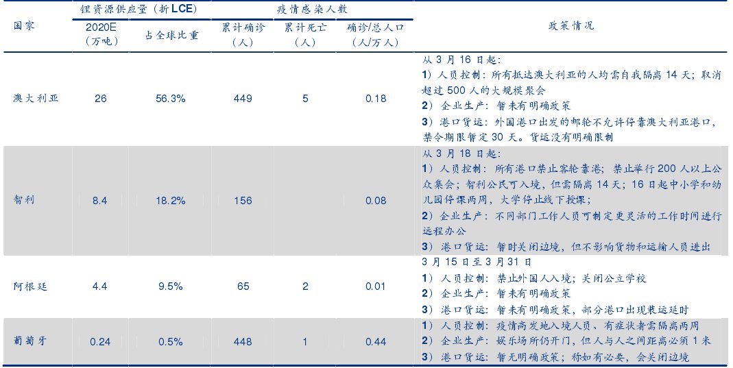 海外主要鋰資源生產(chǎn)國疫情及防控政策情況