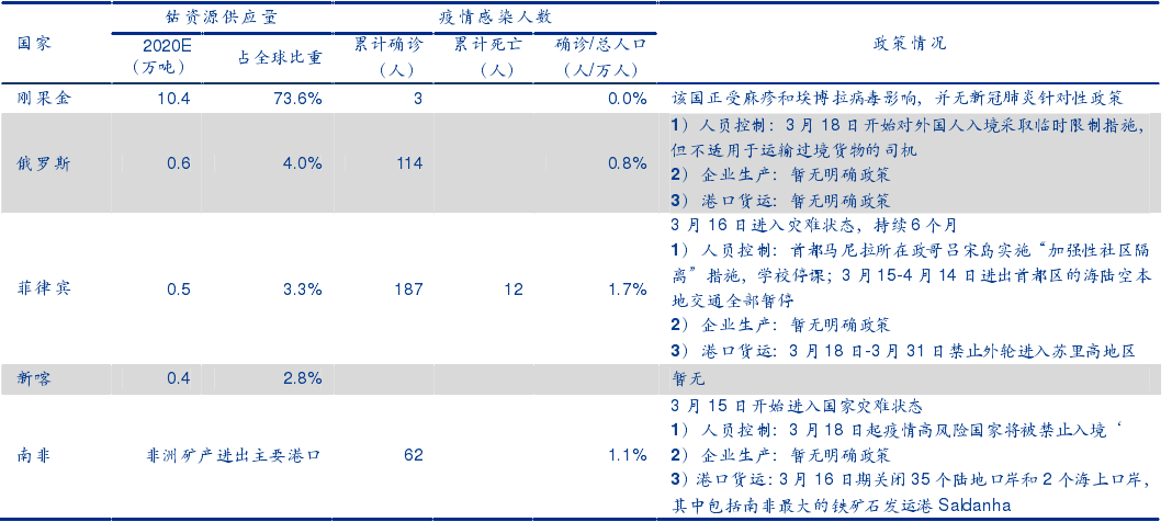 海外主要鈷資源生產(chǎn)國疫情及防控政策情況