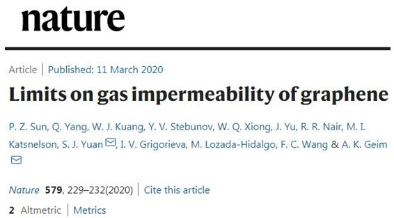 3月11日,Nature (《自然》)在線發(fā)表了武漢大學(xué)物理科學(xué)與技術(shù)學(xué)院袁聲軍教授與國(guó)內(nèi)外研究團(tuán)隊(duì)關(guān)于石墨烯氣體通透極限的最新研究成果。論文題為“Limits on gas impermeability of graphene”,袁聲軍和曼切斯特大學(xué)教授、諾獎(jiǎng)得主安德烈•海姆(Prof. Sir Andre Geim)為共同通訊作者。