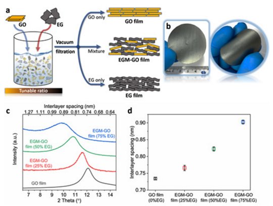 圖1. 片層間距可調(diào)節(jié)的復(fù)合石墨烯薄膜的制備過(guò)程