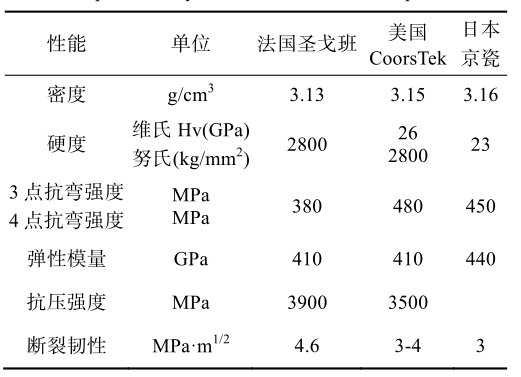 國際上知名公司生產(chǎn)的SiC防彈陶瓷材料的性能