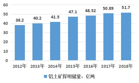 從礦石原料看,我國(guó)鋁土礦探明儲(chǔ)量近些年整體有所提升,截至2018年,全國(guó)鋁土礦探明儲(chǔ)量51.7億噸,同比增長(zhǎng)1.59%。