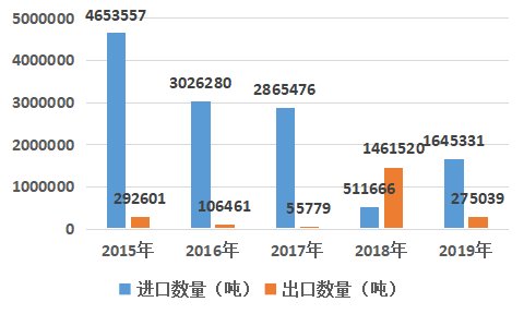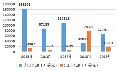 2015-2019年中國(guó)氧化鋁進(jìn)出口數(shù)據(jù)