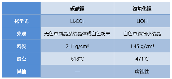 碳酸鋰和氫氧化鋰性質(zhì)對(duì)比