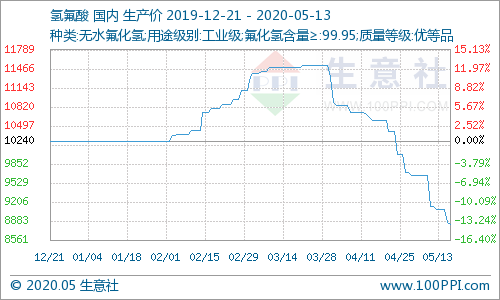 螢石價(jià)格維持低位,氫氟酸市場(chǎng)價(jià)格持續(xù)走低。