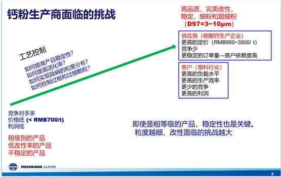 這對(duì)鈣粉生產(chǎn)商如何提高產(chǎn)品的穩(wěn)定性、提高活化率、實(shí)現(xiàn)陡峭的粒度分布、控制過粗和過細(xì)顆粒等工藝提出了更高的要求,也是鈣粉生產(chǎn)商面臨的挑戰(zhàn)。