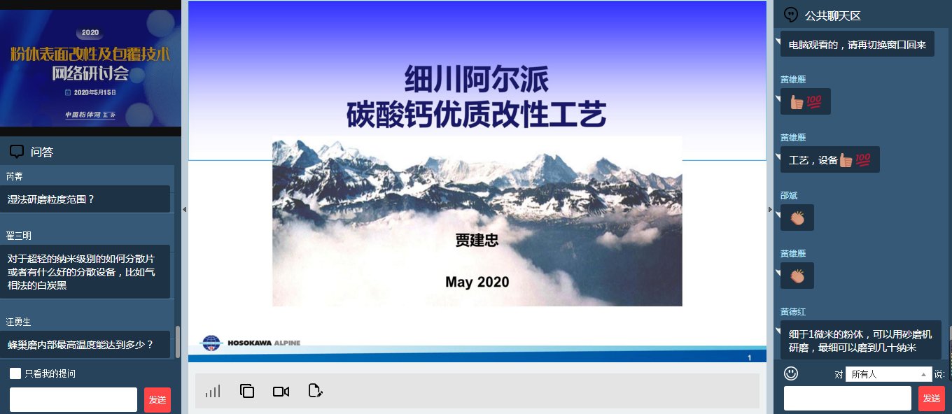 中國粉體網(wǎng)訊 5月15日,中國粉體網(wǎng)旗下粉體公開課平臺(tái)舉辦了首屆“粉體表面改性及包覆技術(shù)網(wǎng)絡(luò)研討會(huì)”,來自細(xì)川密克朗上海粉體機(jī)械有限公司的礦物及金屬應(yīng)用銷售經(jīng)理賈建忠分享了《細(xì)川阿爾派碳酸鈣優(yōu)質(zhì)改性工藝》。