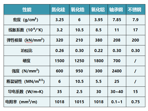 氮化硅陶瓷的熱膨脹系數(shù)大約是軸承鋼的20%,因此陶瓷軸承隨溫度變化的尺寸變化量小,且產(chǎn)生的熱預載較低,從而避免了過多的熱量聚集而引起疲勞剝落失效,有益于在溫度變化較大的環(huán)境中使用。