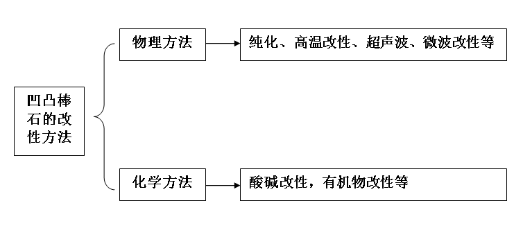 有機鹽改性通常和物理改性相配合,首先對凹凸棒石進行純化等操作,再加入有機鹽,有機鹽中基團可以取代凹凸棒石內部部分水和硅鋁等陽離子。從而實現(xiàn)對凹凸棒石微觀結構上的接枝聚合和交聯(lián)反應,進一步提高凹凸棒石的疏水性能,提高吸附污水及土壤中的重金屬離子的能力。