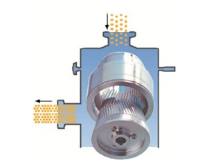 膠體磨的工作原理是靠一對(duì)錐形的轉(zhuǎn)齒與定齒作相對(duì)運(yùn)動(dòng),物料通過定轉(zhuǎn)齒之間的間隙受到剪切力、磨擦力、離心力和高頻振動(dòng)而達(dá)到粉碎、乳化、均質(zhì)、分散的目的。為了降低因摩擦產(chǎn)生的大量熱量,一般均配有冷卻系統(tǒng)。