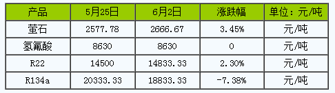 氟化工板塊各產(chǎn)品價格統(tǒng)計(jì):