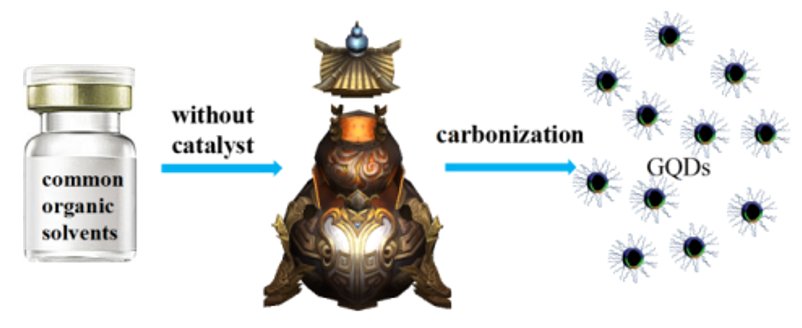直接碳化有機溶劑形成GQDs的機理示意圖