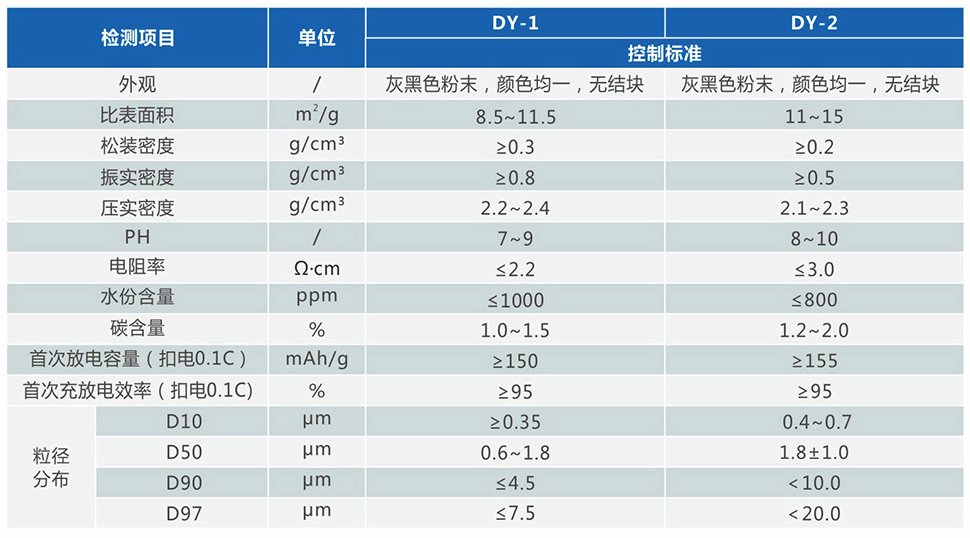 貝特瑞磷酸鐵鋰產(chǎn)品的理化指標(biāo)