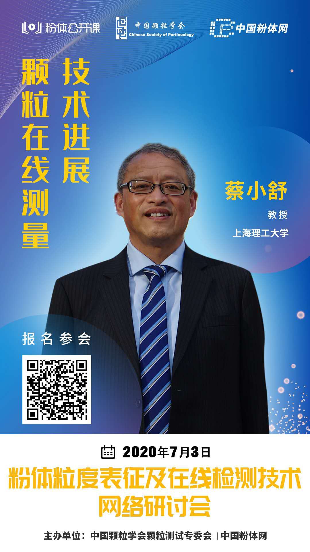 為幫助企業(yè)技術(shù)人員更好的了解顆粒在線測量技術(shù),加快樣品檢測速度,提高檢測結(jié)果的質(zhì)量,中國粉體網(wǎng)旗下粉體公開課平臺(tái)將于2020年7月3日舉辦首屆“粉體粒度表征及在線檢測技術(shù)網(wǎng)絡(luò)研討會(huì)”,屆時(shí),來自上海理工大學(xué)的蔡小舒教授將帶來題為《顆粒在線測量技術(shù)進(jìn)展》的報(bào)告,為您解析更多顆粒在線測量相關(guān)內(nèi)容。