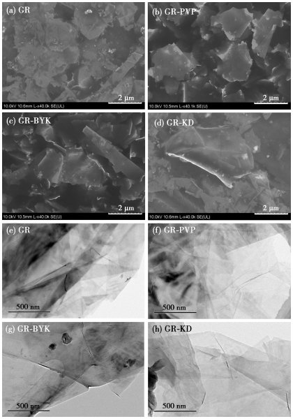 四種石墨烯漿料的SEM和TEM圖