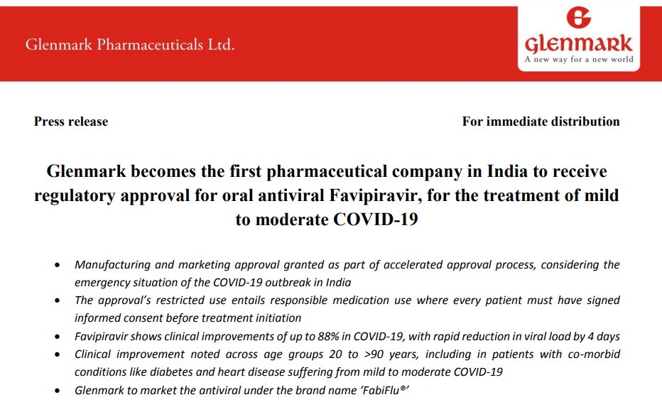 中國粉體網(wǎng)訊 6月20日,Glenmark制藥公司宣布印度藥監(jiān)機(jī)構(gòu)已加速批準(zhǔn)抗病毒藥物法維拉韋(商品名:FabiFlu)用于治療輕至中度COVID-19患者。這是印度批準(zhǔn)的首個新冠肺炎治療藥物。