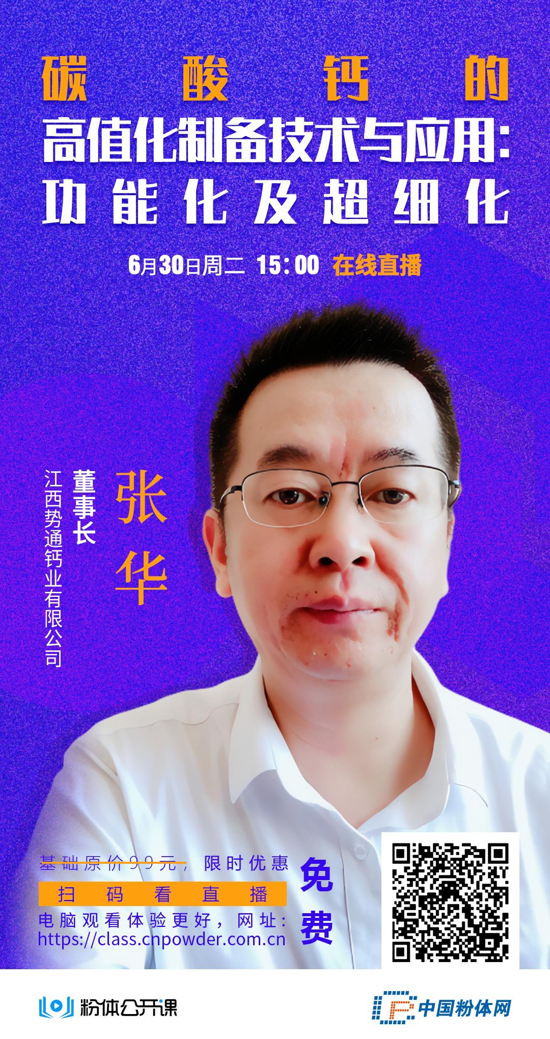 6月30日,江西勢(shì)通鈣業(yè)有限公司董事長(zhǎng)張華先生將走進(jìn)粉體公開(kāi)課直播間,為我們帶來(lái)題為《碳酸鈣的高值化制備技術(shù)與應(yīng)用:功能化及超細(xì)化》的報(bào)告,屆時(shí)他詳細(xì)解讀碳酸鈣的高值化應(yīng)用方向:功能性、超細(xì)化,并對(duì)碳酸鈣在衣、食、住、行、用中的應(yīng)用進(jìn)行詳細(xì)的介紹。