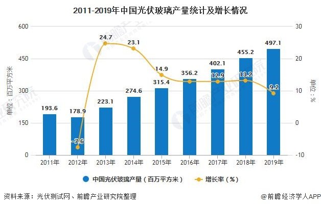 2011-2019年中國光伏玻璃產(chǎn)量統(tǒng)計及增長情況